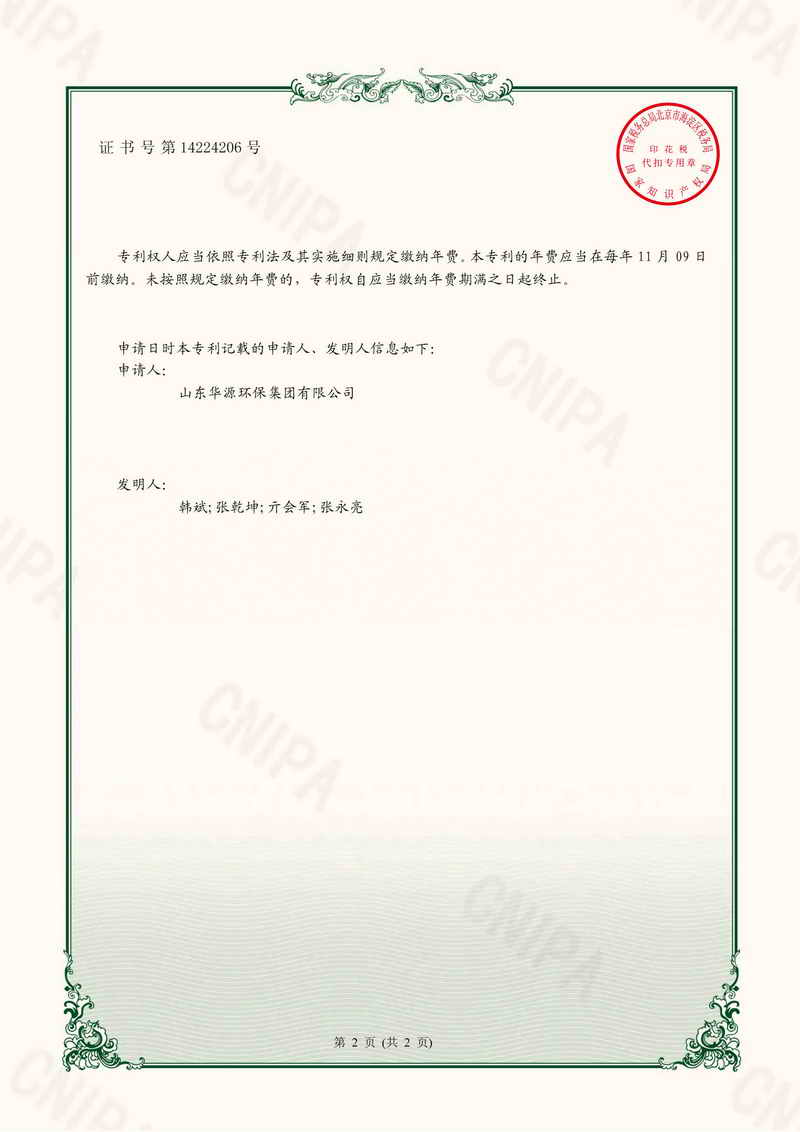 專利證書一種廢鋁灰生產速凝劑的反應物混合設備